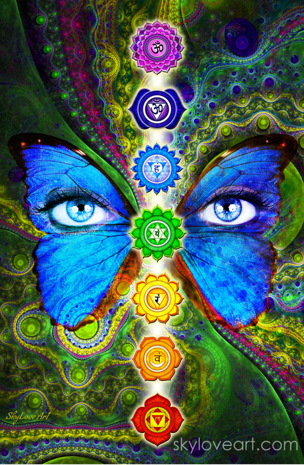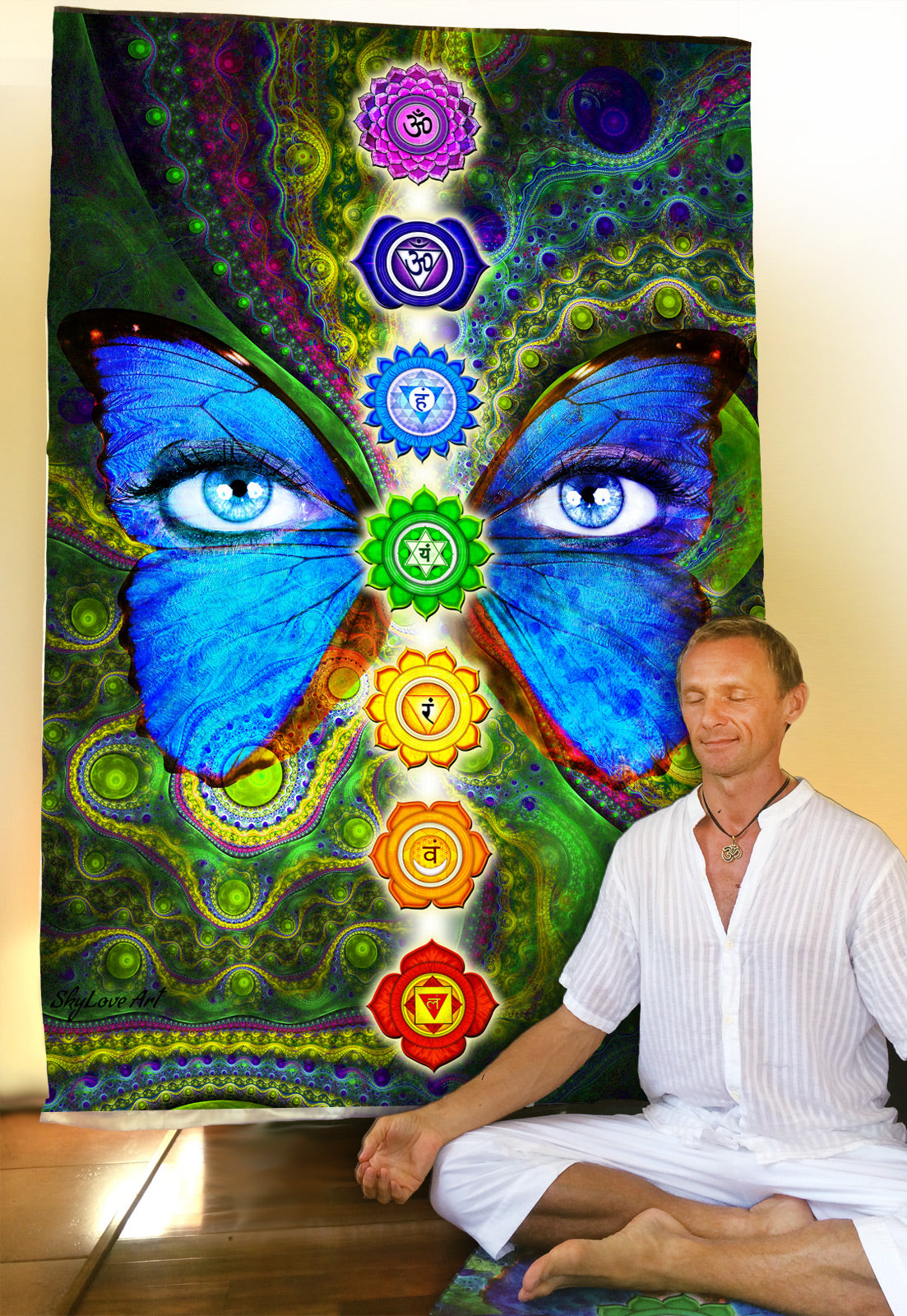 Chakra Butterfly tapestry is rich with color and vibrant and engaging energy! A butterfly is a symbol for transformation and this piece is inspiring us to awaken from our sleep, open our eyes and spread our wings! By focusing on the symbols of the chakras we can experience more balance in our life.
