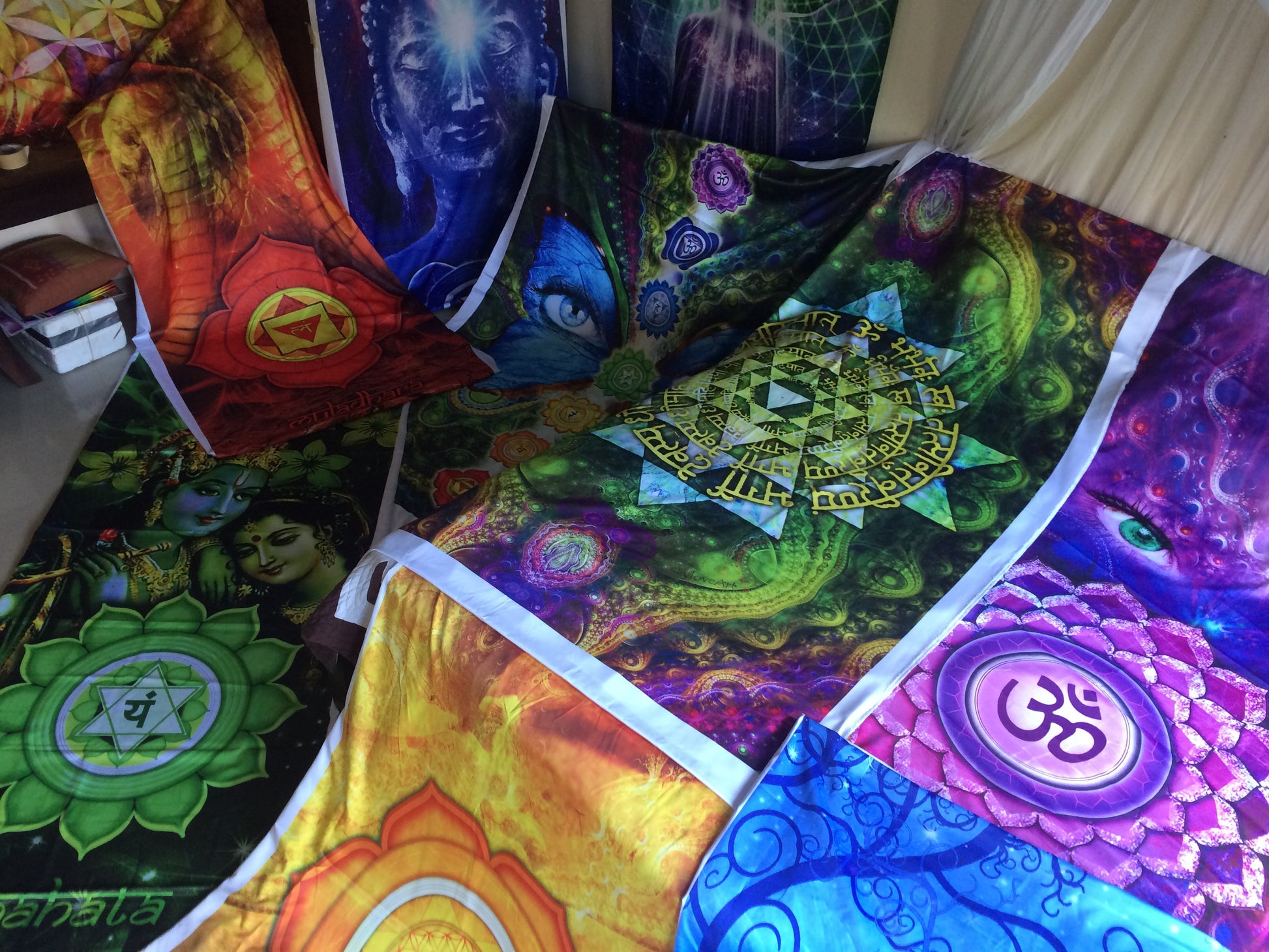 Not only can you add beautiful decoration to your festival or event but with this amazing offer our art can also pay for itself if you make some tapestries and small chakra banners available for sale at your event!